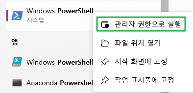 PowerShell을 관리자 권한으로 실행하고 다음 명령을 입력합니다.