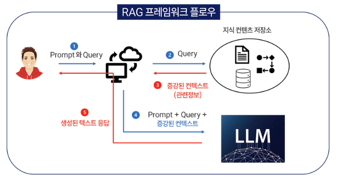 - 벡터화된 질문으로 벡터화된 문서들 중 가장 관련도가 높은 문서 도출 -> 문서 검색 결과를 포함하여 기존 프롬프트 확장