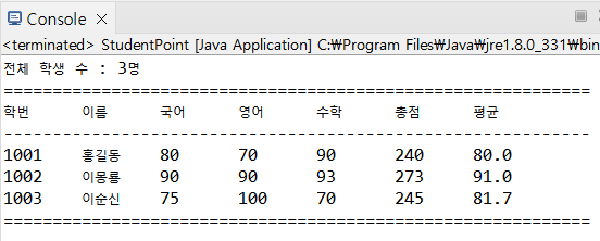 System.out.println("학번\t이름\t국어\t영어\t수학\t총점\t평균");