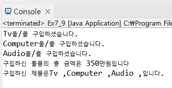 System.out.println("구입하신 물품의 총 금액은 " +sum+"만원입니다");