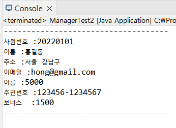 Manager2 m = new Manager2("20220101", "홍길동", "서울 강남구", "hong@gmail.com", 5000, "123456-1234567");