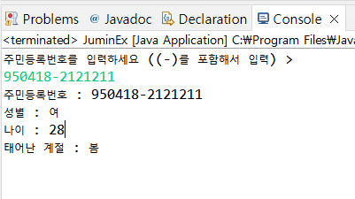 System.out.println("주민등록번호를 입력하세요 ((-)를 포함해서 입력) > ");