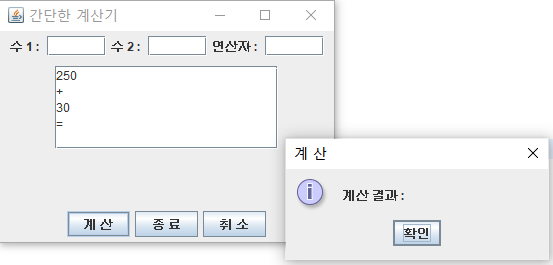 "계 산",JOptionPane.INFORMATION_MESSAGE);